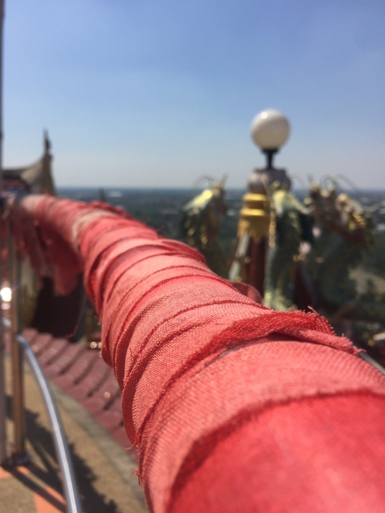 A lo alto del todo hay dos terrazas llenas de esculturas y lacitos rojos con plegarias en sus barandillas.